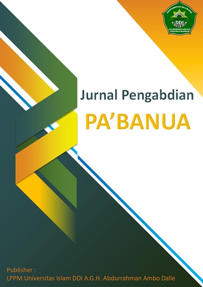 Jurnal Pengabdian Pa’banua (JPP) merupakan jurnal ilmiah yang diterbitkan oleh LPPM Universitas Islam DDI A.G.H. Abdurrahman Ambo Dalle sebagai media publikasi hasil pengabdian kepada masyarakat berbasis riset, inovasi, dan nilai-nilai keislaman. JPP memuat artikel tentang praktik pemberdayaan masyarakat yang partisipatif, kolaboratif, dan berkelanjutan dalam bidang pendidikan dan literasi, ekonomi umat, kesehatan dan lingkungan, teknologi tepat guna, tata kelola sosial-keagamaan, serta penguatan kearifan lokal. Dengan semangat Pa’banua yang menekankan kebersamaan dan transformasi sosial berbasis nilai lokal, JPP hadir sebagai wadah diseminasi pengabdian yang berdampak nyata, terukur, dan berorientasi pada keberlanjutan.